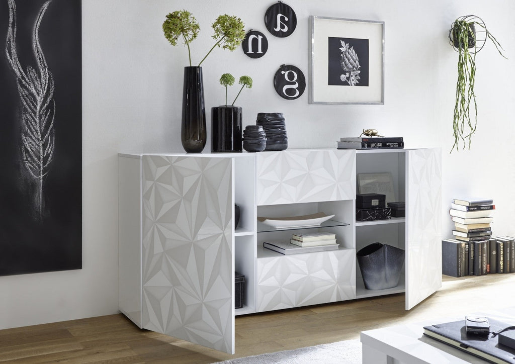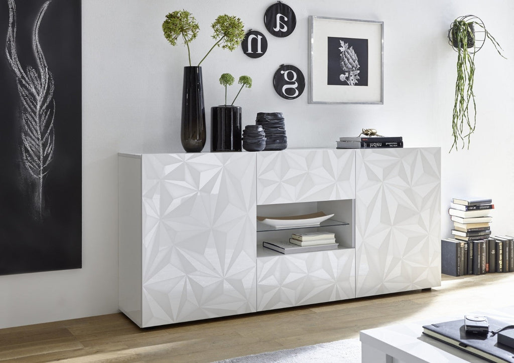 Mobile Buffet 2 Ante 2 Cassetti 180x42x84 cm in Legno TFT Praga Bianco Lucido