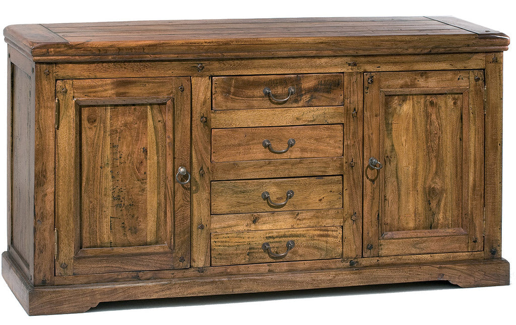 Mobile Buffet in Legno Acacia Antic Chiaro con 2 Ante e 4 Cassetti cm 150x45H80
