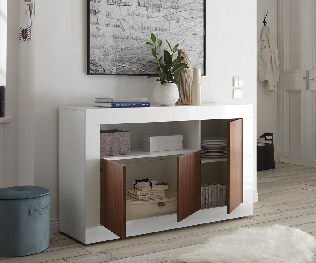 Mobile Buffet 3 Ante 138x42x86 cm in Legno TFT Lipari Bianco e Noce