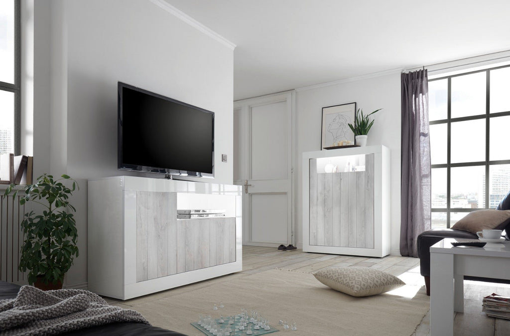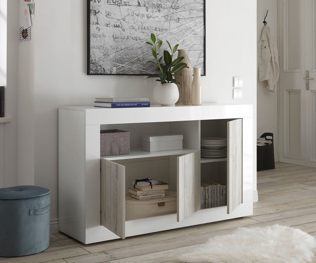 Mobile Buffet 3 Ante 138x42x86 cm in Legno TFT Lipari Bianco e Pino