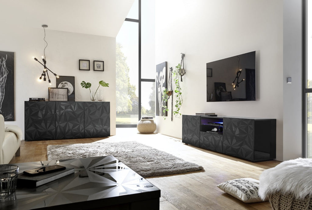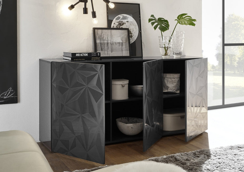 Mobile Buffet 3 Ante 180x42x84 cm in Legno TFT Praga Nero Lucido