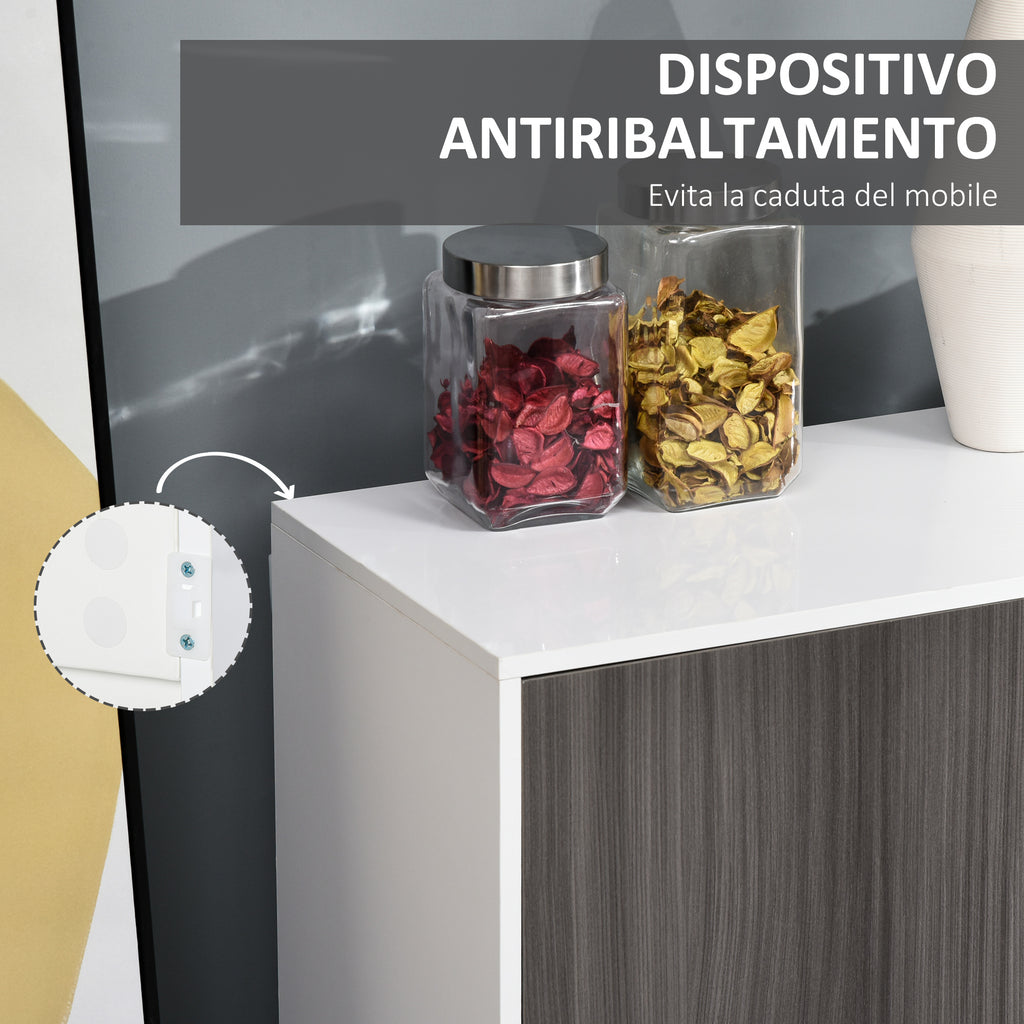 Mobile Credenza 2 Ante 2 Cassetti 117x36x74 cm in Legno Bianco e Grigio Scuro
