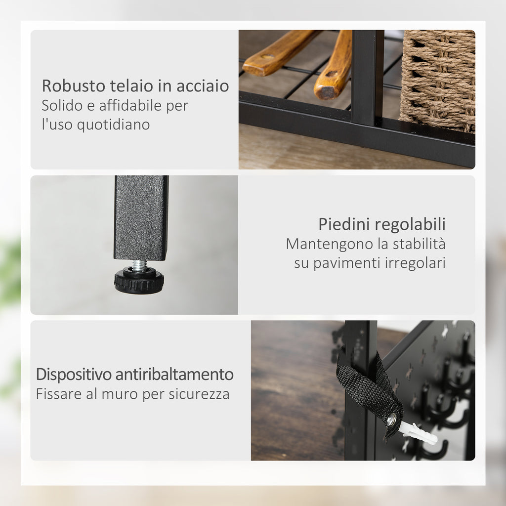 Vuoi creare più spazio in cucina? Questo scaffale da cucina è caratterizzato da un design compatto e da uno stile industriale adatto a vari arredamenti. Dotato di tre ripiani fissi, due cesti superiori, due cesti estraibili in filo metallico e 5 ganci per appendere alcuni utensili, questo mobile da cucina possiede una grande capacità di raccolta oggetti per offrirti un'esperienza d'uso memorabile. Rinnova la tua cucina oggi stesso con mobile da cucina in legno .
