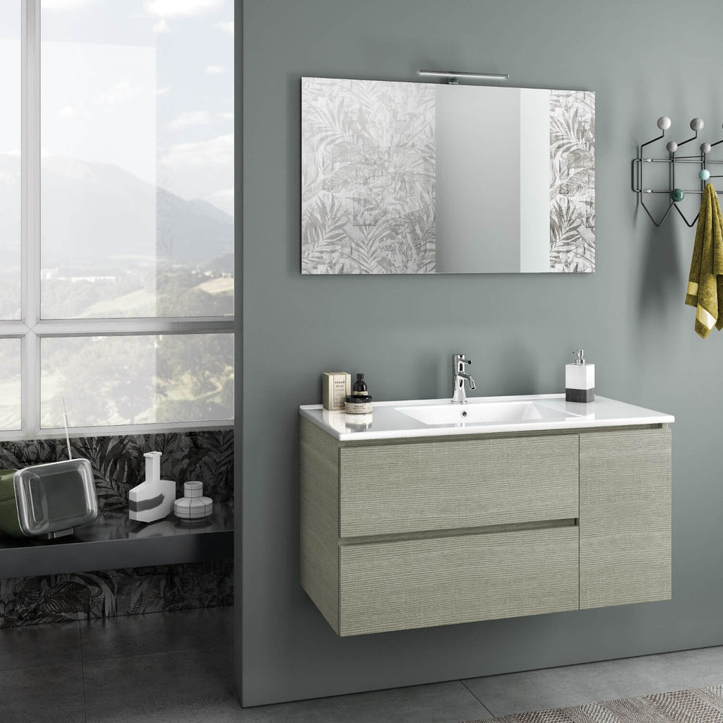 Mobile da Bagno Sospeso con Lavabo Specchio e Lampada a LED TFT Febe Yuta