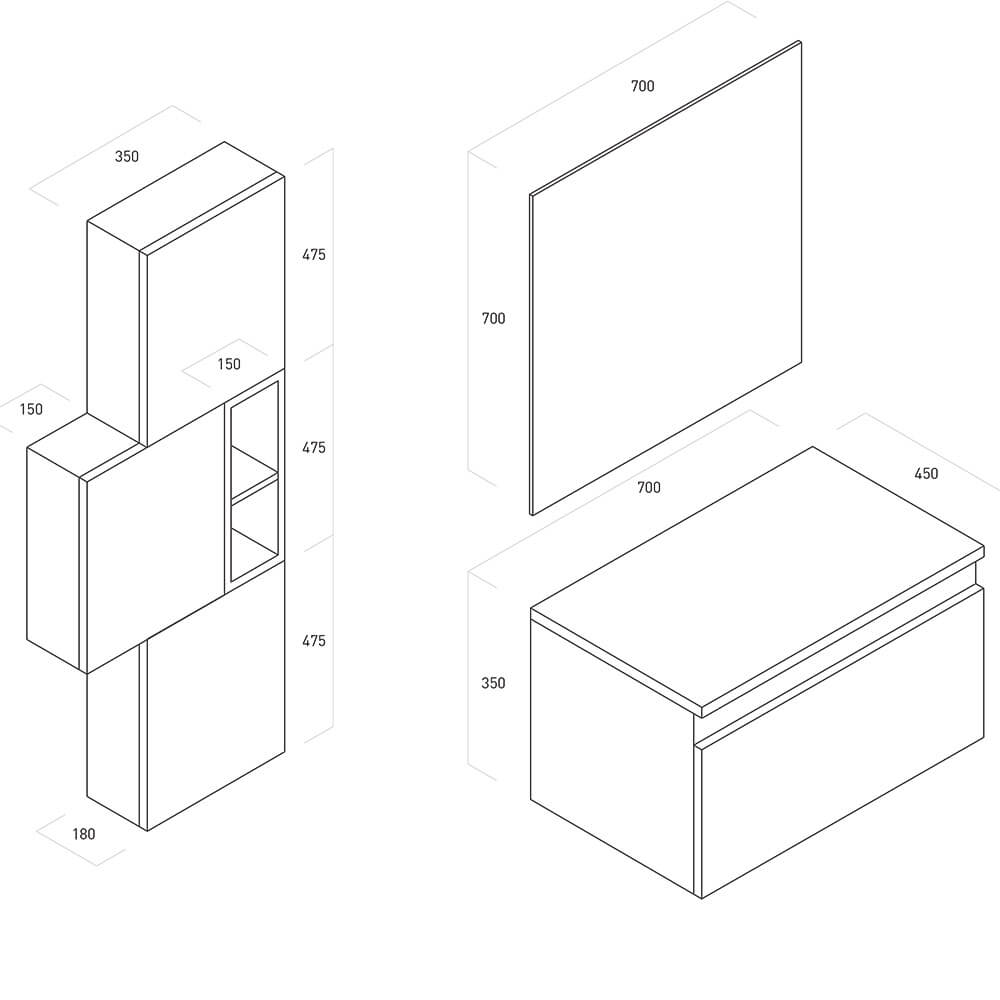 - Base con un cassetto soft closing e maniglia a gola in alluminio 70x45x35 cm
