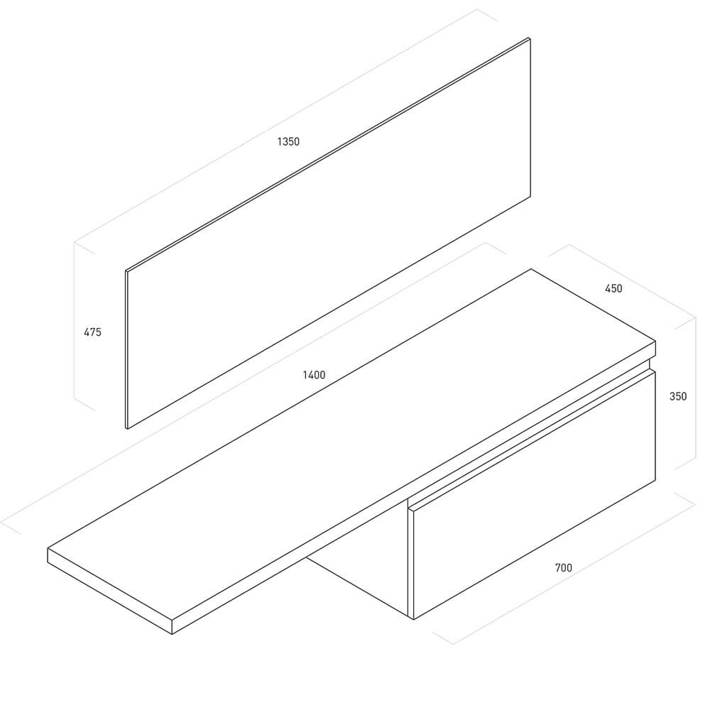 - Base con un cassetto soft closing e maniglia a gola in alluminio 70x45x35 cm