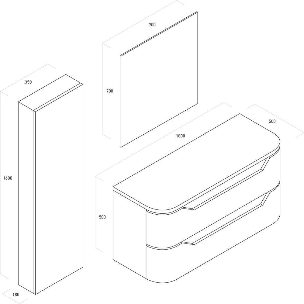 Arredo bagno moderno Palma 01 completo di base sospesa con cassetto soft close, lavabo in resina, specchiera e lampada led.