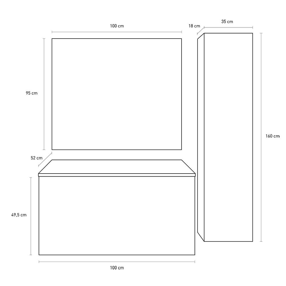 - Base porta lavabo sospesa con cestone 100x52x49 cm