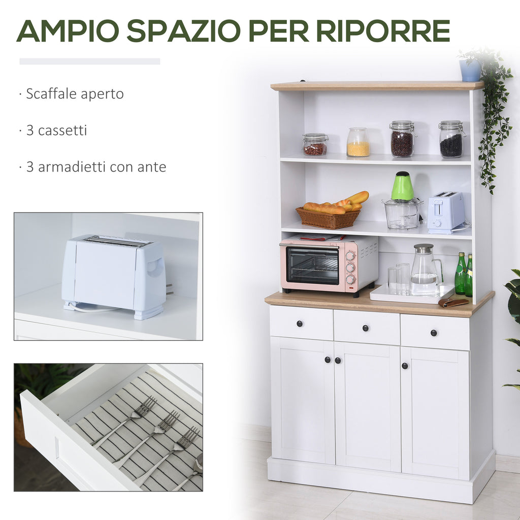 Mobile da Cucina Credenza 3 Ripiani 3 Cassetti 3 Ante 101x39x180,5 cm Bianca