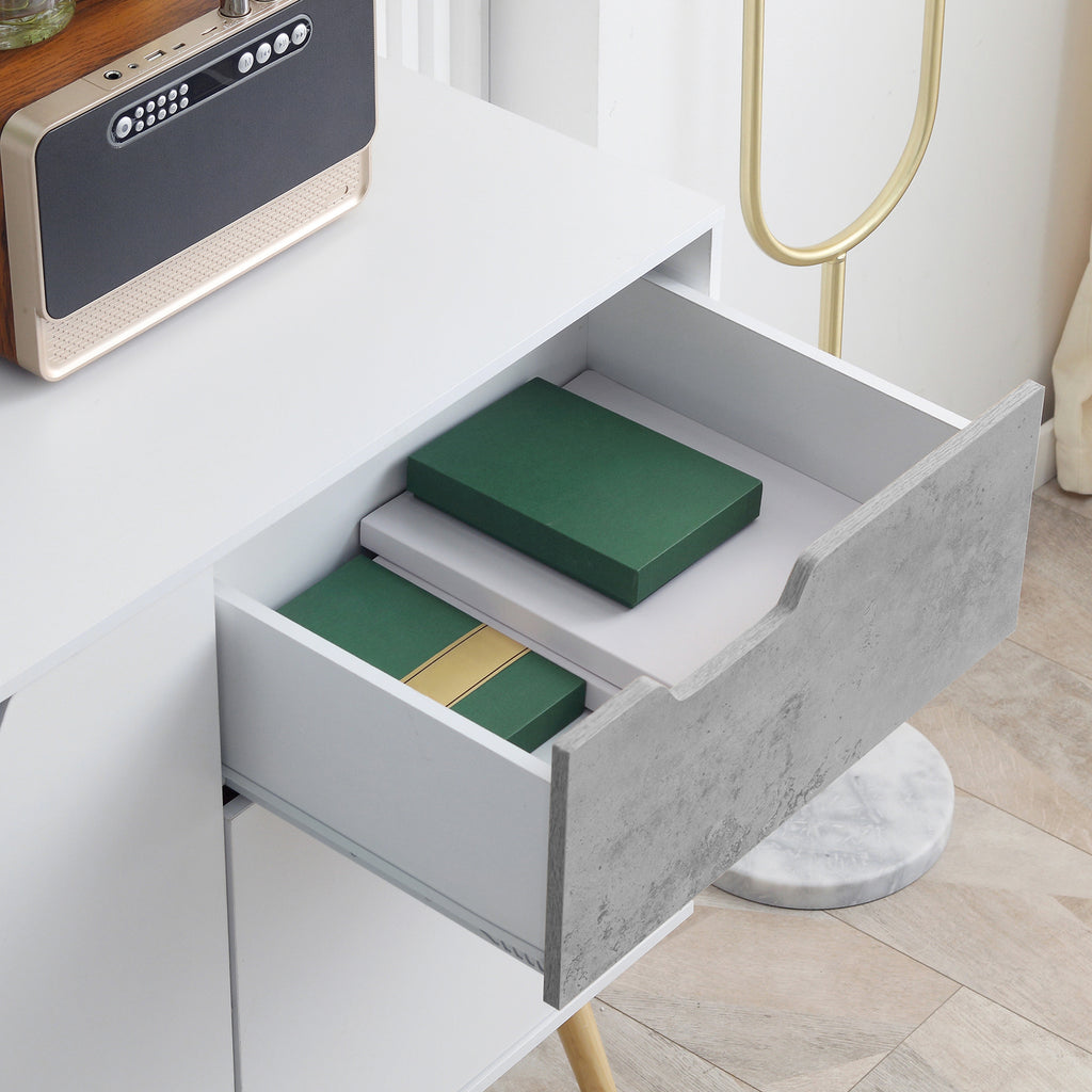 Mobile da Salotto 2 Armadietti 2 Ante e Cassetto 98x39x81,5 cm in Truciolato e Pino Grigio e Bianco