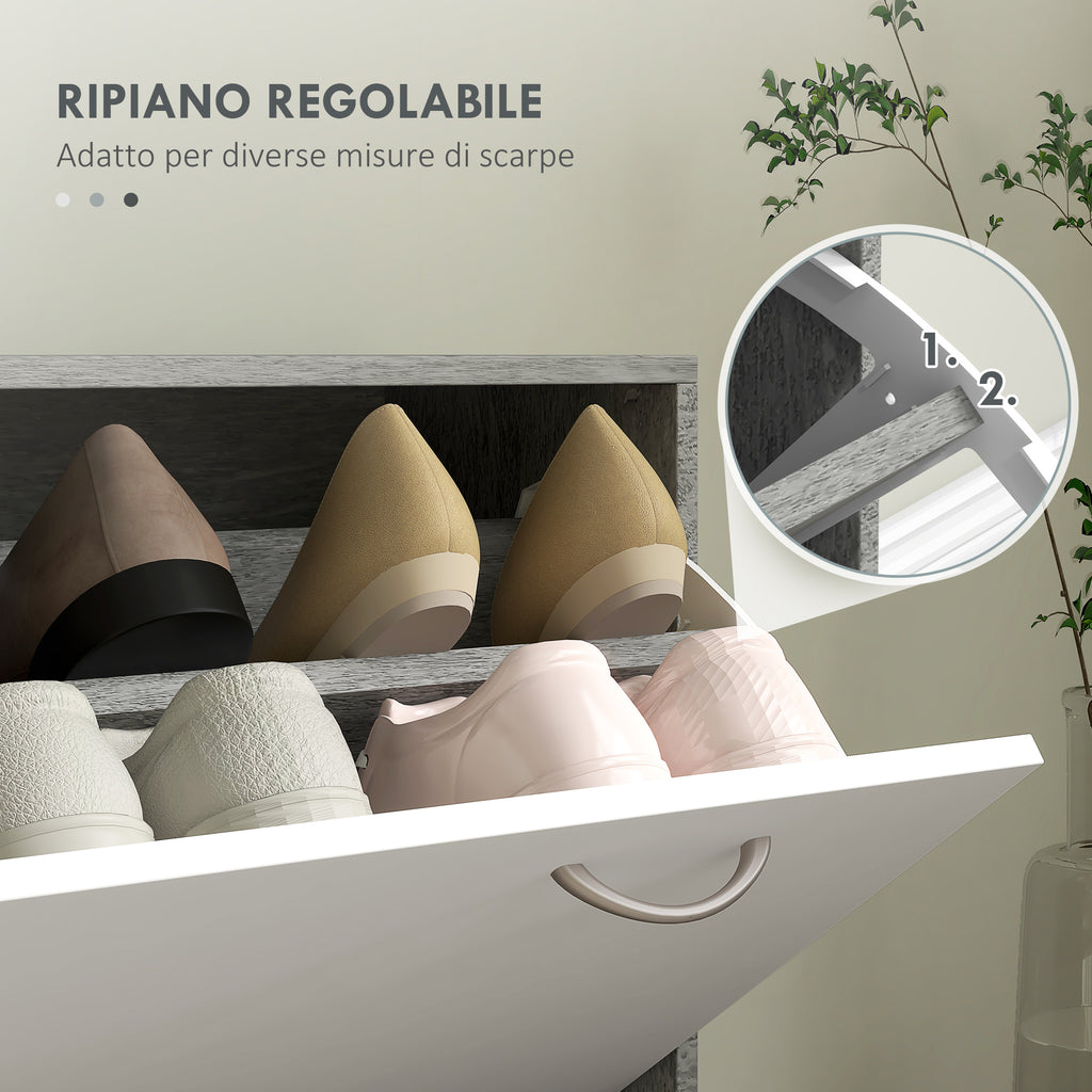 - SCARPIERA A RIBALTA: Questo mobile da ingresso con scarpiera a 2 ripiani ti permette di riporre scarpe e accessori. La mensola centrale è regolabile per fare spazio a diversi tipi di scarpe
