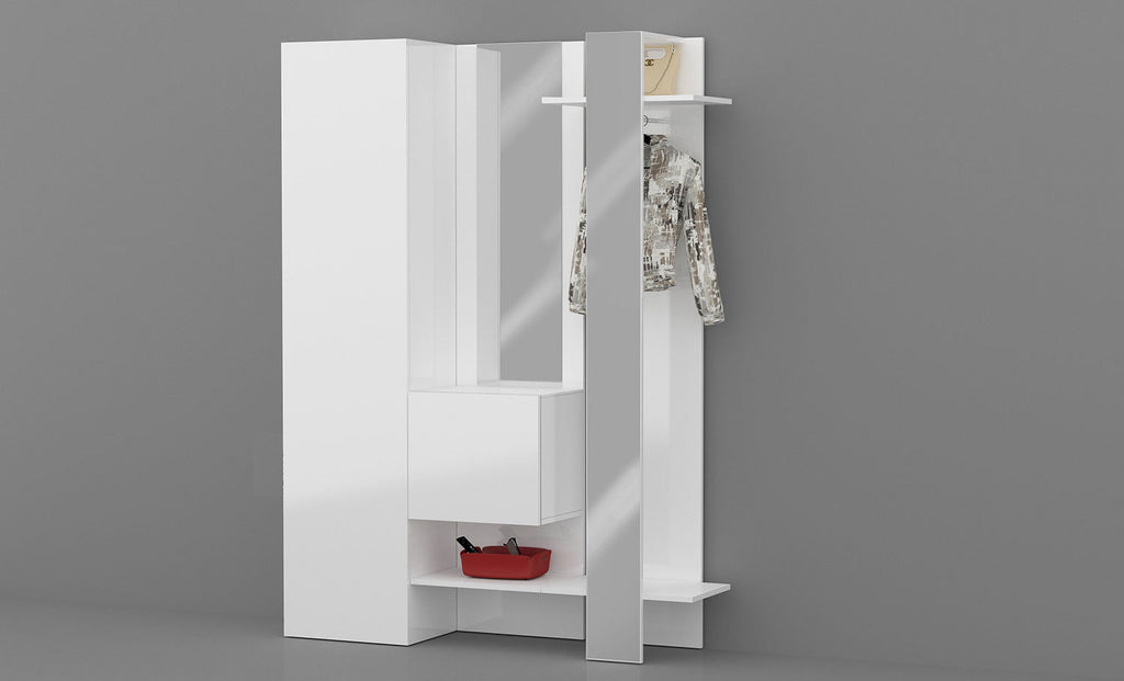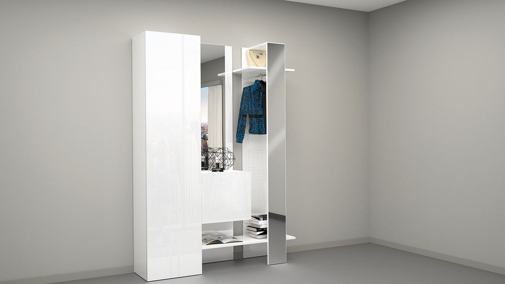 Mobile Ingresso Appendiabiti e 2 Specchi 140x35x191 cm Kompact Bianco Lucido