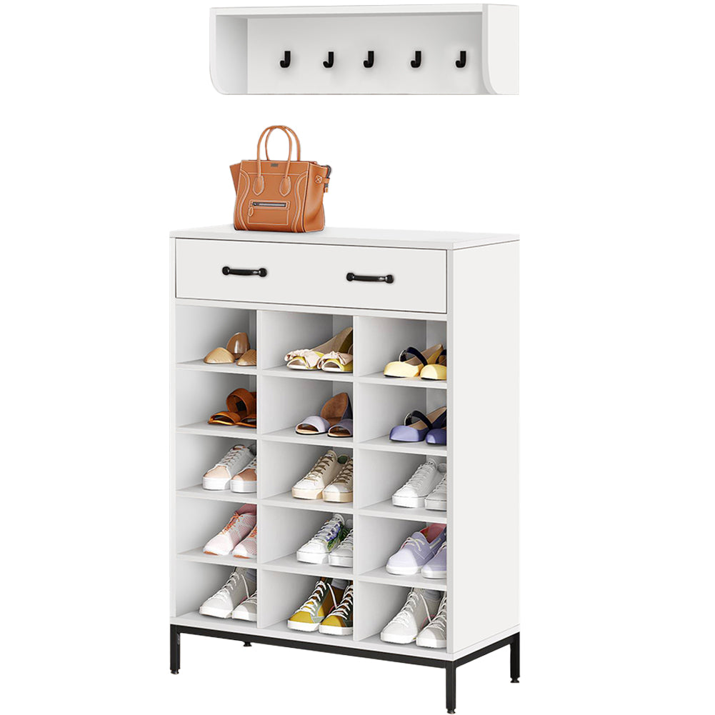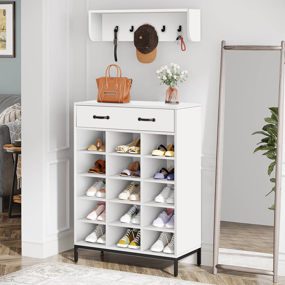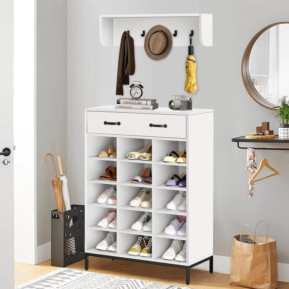 1 x Set Ingresso Scarpiera e Appendiabiti da Parete Portascarpe 15 Scomparti Bianco