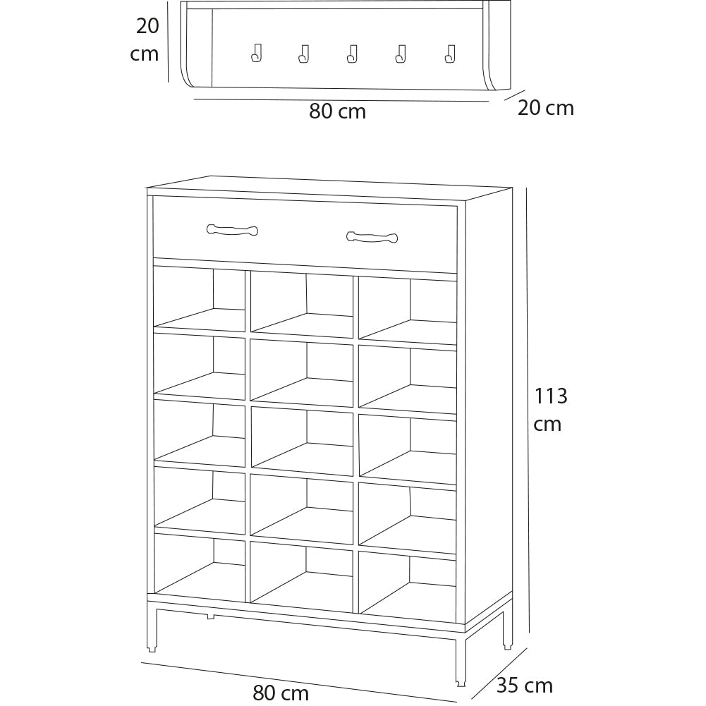 - Dimensioni scarpiera: 80 x 35 x 113 cm