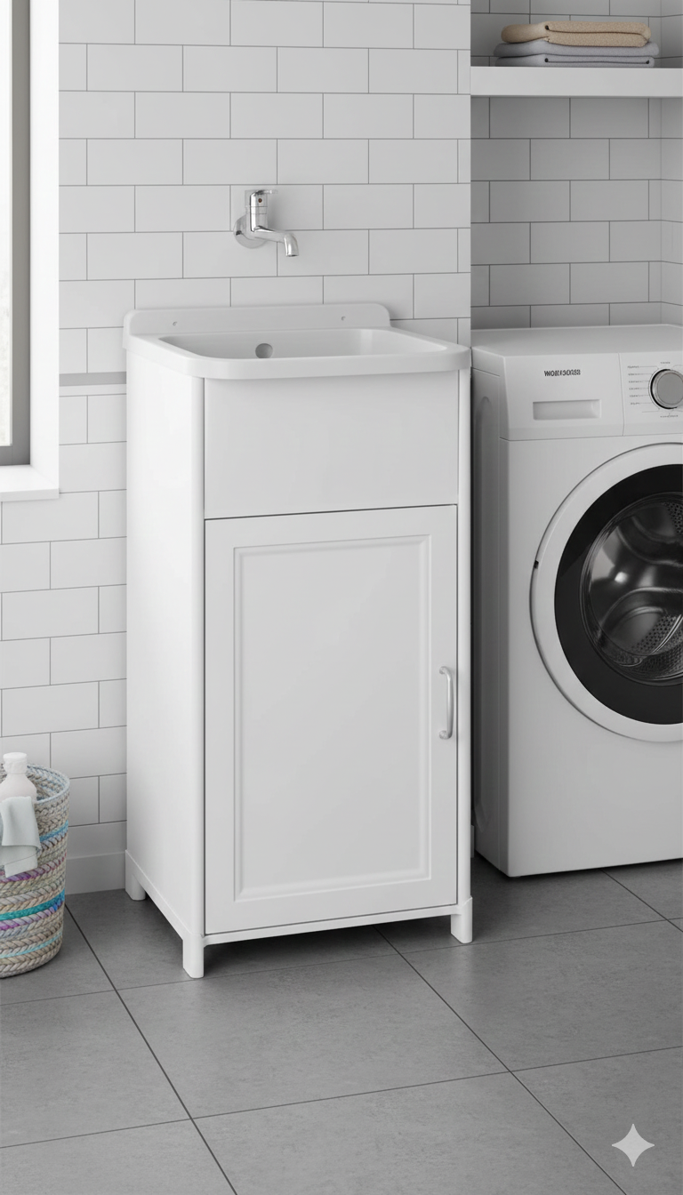 Mobile Lavatoio 40x40x78 cm 1 Anta con Pilozzo Mini in Resina Bianco
