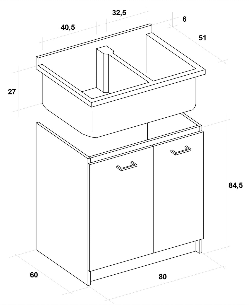 Giordano Shop Lavanderia Mobile Lavatoio 80x60x85cm 2 Ante 2 V...