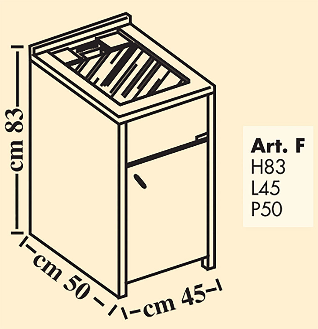 Lavatoio che unisce funzionalità e design. Completamente disegnato e prodotto in Italia, è la giusta unione di gusto e praticità. Costituito da un lavabo integrato munito di asse di lavaggio in legno marino che funge anche da copertura della vasca per mantenerla pulita o come ulteriore piano di appoggio. Alla base del lavabo, vi è un pratico mobiletto ad un anta, utile per sistemare in modo ordinato detergenti, detersivi. La struttura è interamente in alluminio trattato per renderlo altamente idrorepellente e la vasca in metacrilato stampata a iniezione per maggiore resistenza, materiale dalla facile manutenzione. Il tutto di colore bianco adattabile, quindi, ad ogni stile d'arredo. Sifone incluso.