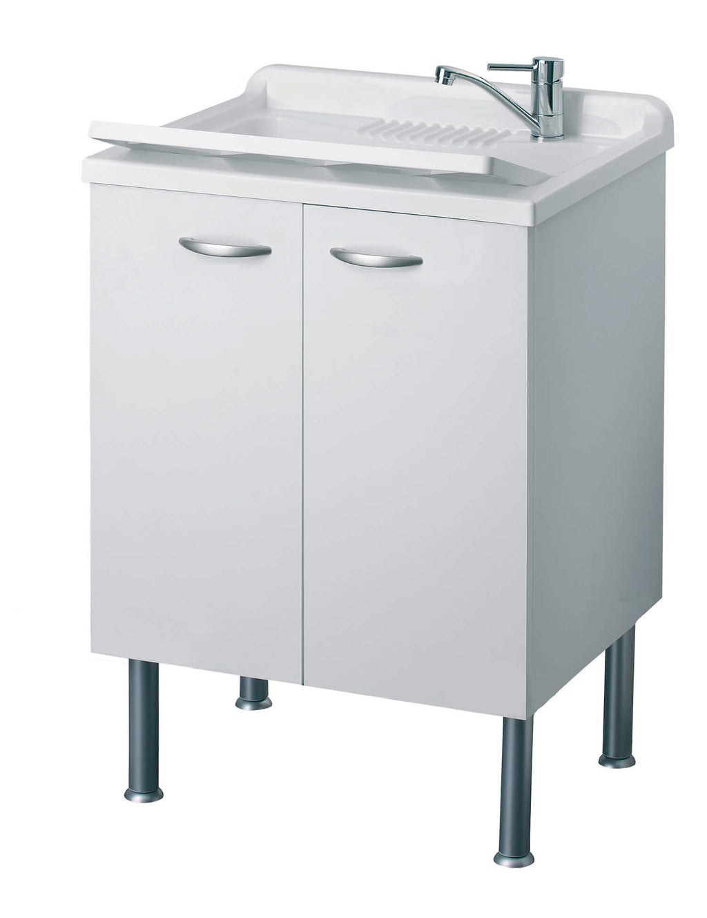 Mobile Lavatoio in nobilitato 18 mm idrofugo 2 ante, vasca in resina di Polipropilene resistente a tutti gli acidi.
