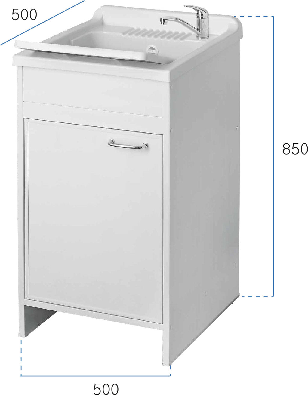 Mobile Lavatoio in PVC colore bianco con apertura a 1 anta, vasca in polipropilene resistente a tutti gli acidi.