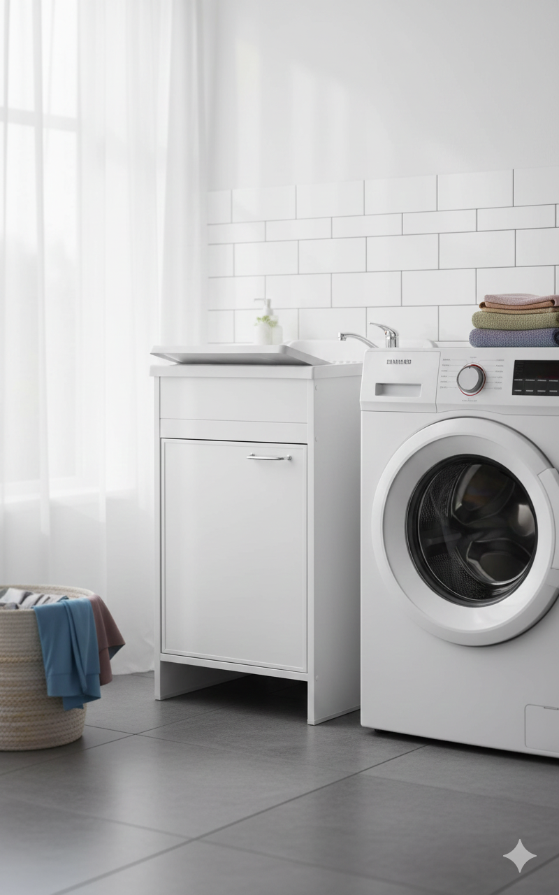 Mobile Lavanderia da Esterno 60x49x84 cm in PVC Bianco