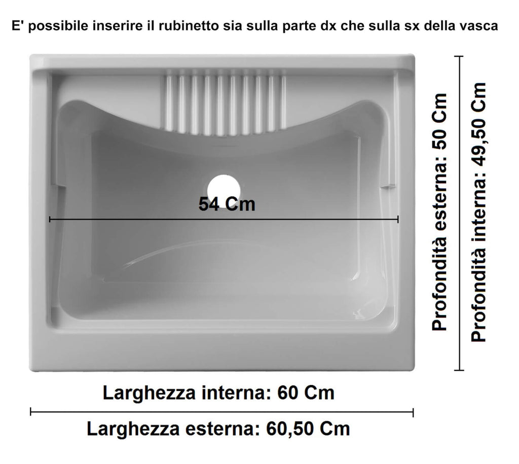 Vasca in resina di Polipropilene resistente a tutti gli acidi.