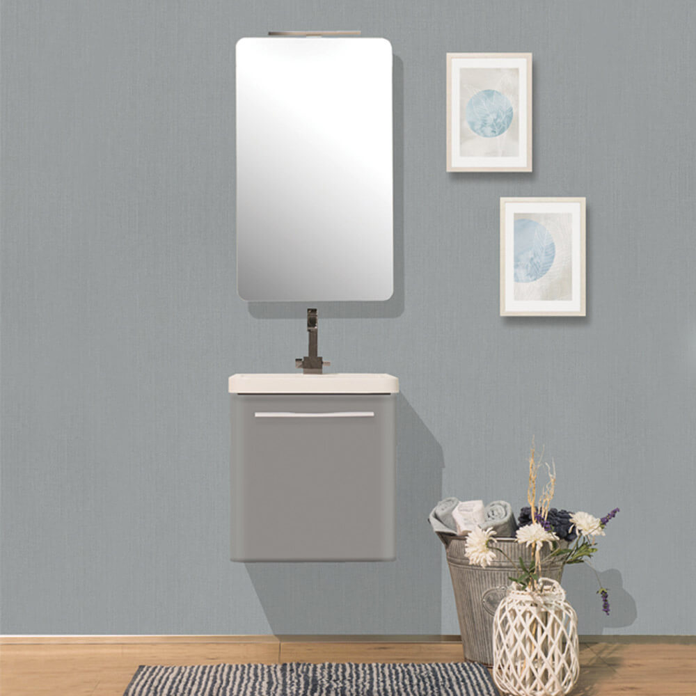 Mobile Lavatoio Sospeso 50,5x50,5x56 cm 1 Cassetto in Nobilitato e Alluminio Montegrappa Novella Dipiù Tortora