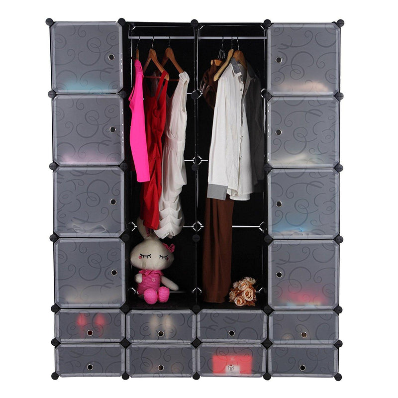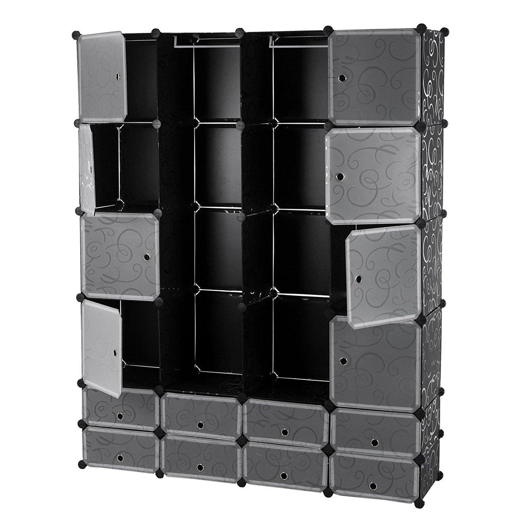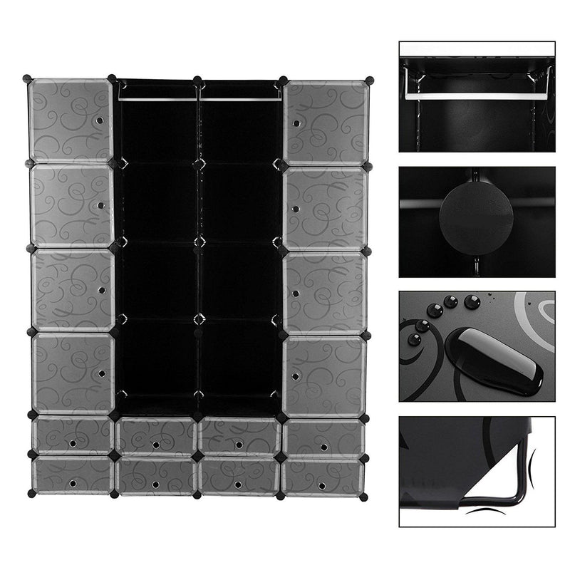 Questo armadio modulare è composto da 8 cubi quadrati con sportello, 8 cubi quadrati senza sportello con aste appendiabiti, e 8 cubi rettangolari in basso per conservare tutte le scarpe, i vestiti o gli accessori in uno spazio ridotto. I cubi possono essere montati insieme o separatamente, offrendo soluzioni personalizzabili per spazi diversi. I cubi possono contenere fino a 2 paia di scarpe mentre i cubi più grandi si adattano perfettamente agli stivali. L'armadio modulare può essere utilizzato per conservare non solo scarpe, ma anche vestiti, accessori, biancheria, CD e DVD, giocattoli e molto altro. I connettori sono realizzati in Zrobusto ABS per unire saldamente i pannelli. L'unità è impermeabilizzata ed è inoltre resistente alla polvere. I pannelli sono facili da pulire con un panno umido. Le porte sono dotate di fori per una facile apertura e flusso d'aria. La caratteristica migliore del prodotto è che può essere assemblato in diverse forme , adattandosi alle proprie esigenze.