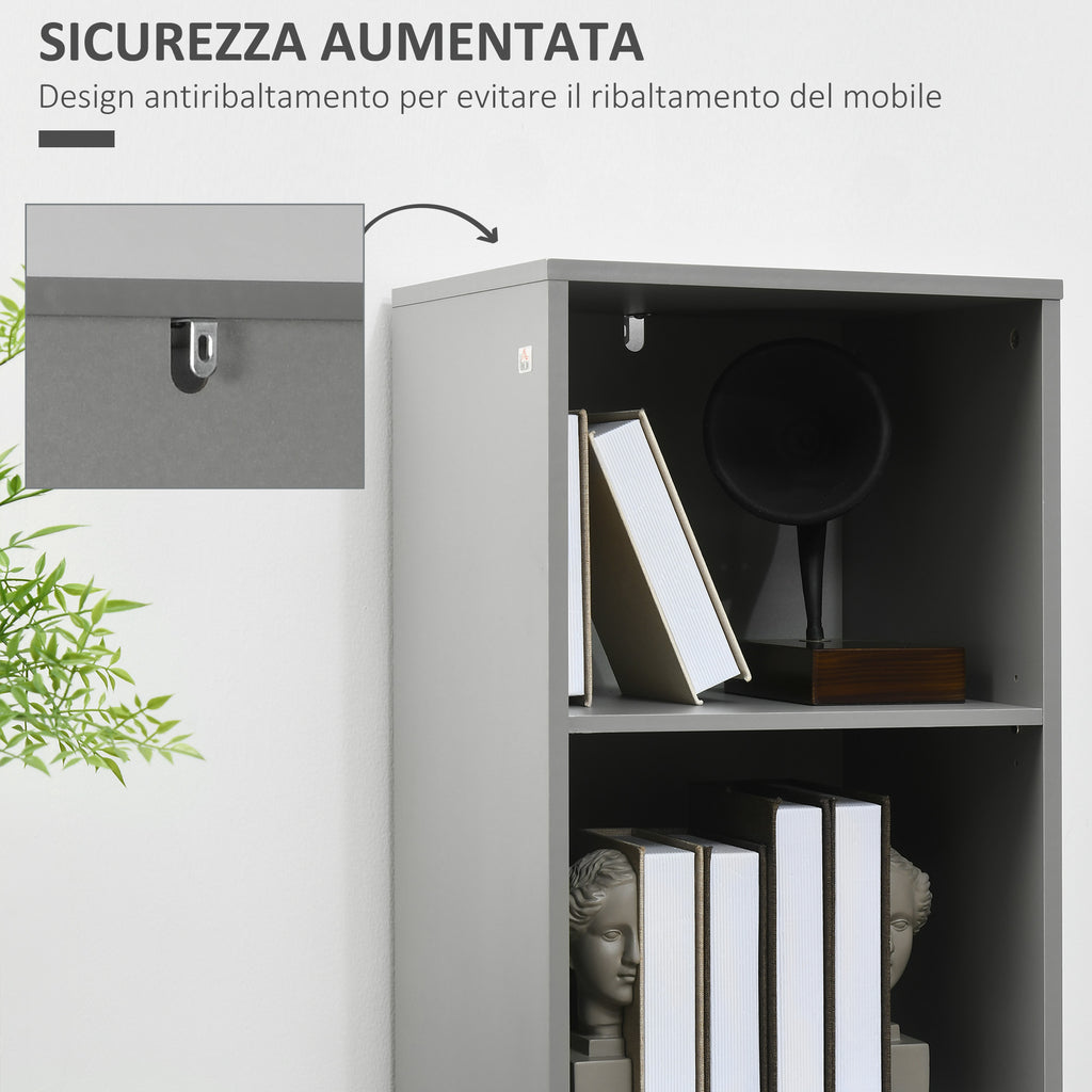 Mobile Multiuso 3 Ripiani 1 Ante 40x38x170 cm in Truciolato e Metallo Grigio e Rovere