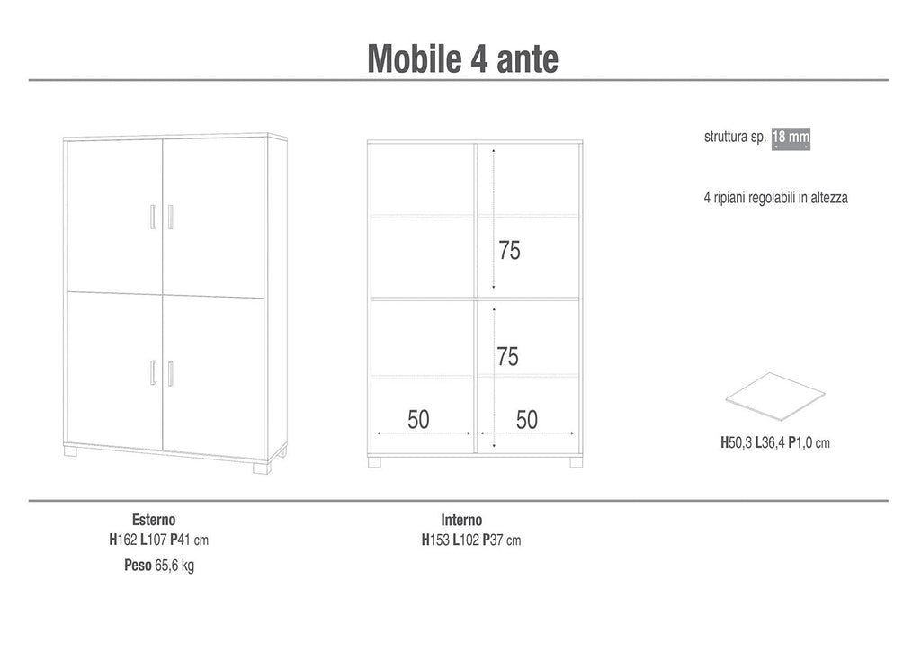 Mobile Multiuso 4 Ante 107x162x41 cm Ossido Nero/Cemento