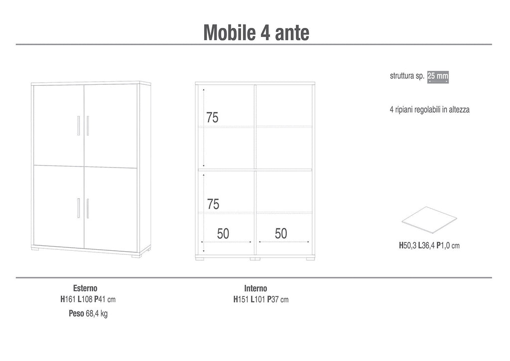 Mobile Multiuso 4 Ante 108x161x41 cm Noce Stelvio