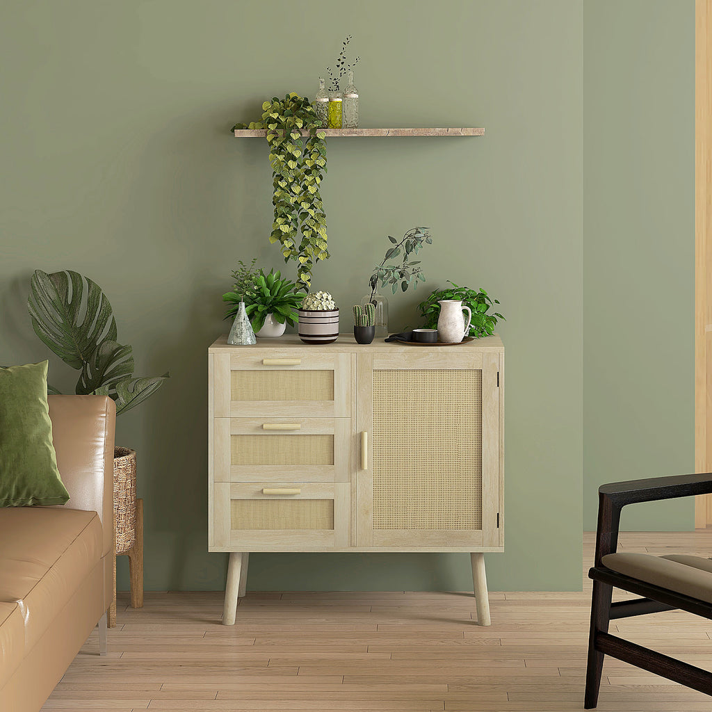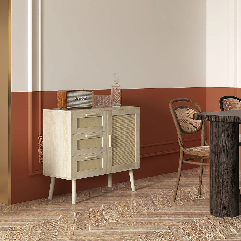 Di' addio al disordine: con questo mobile multiuso in stile boho organizzi ogni tuo spazio senza rinunciare allo stile. Dotato di cassettiera a 3 cassetti e armadietto con una pratica mensola interna regolabile su 3 livelli, questo buffet ti aiuta a riporre oggetti di diverse dimensioni. Perfetta per l'ingresso, il soggiorno, il salotto e altri spazi di casa, questa piccola credenza ti aiuta a tenere tutto in ordine aggiungendo un tocco di originalità al tuo arredo!