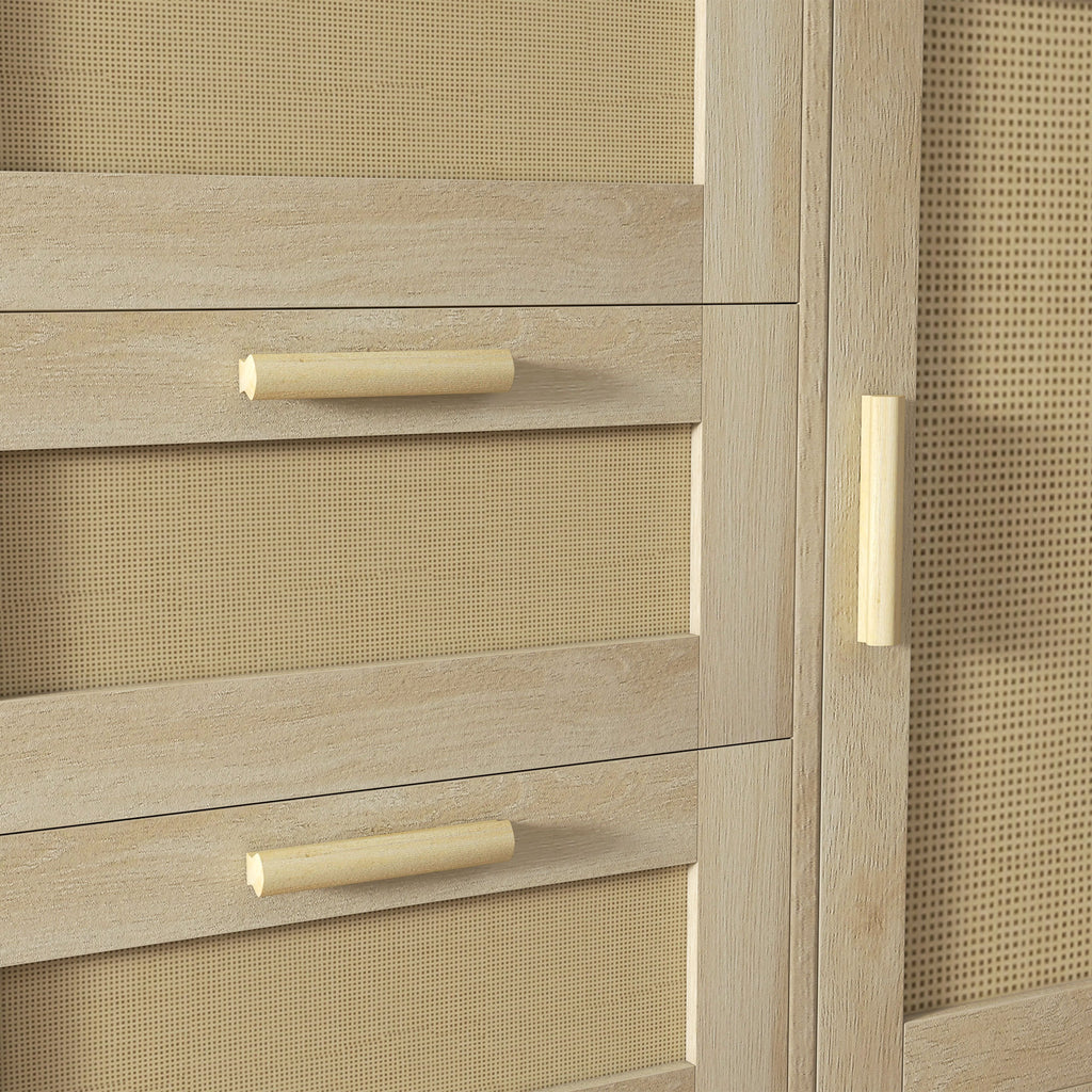 - INSERTI IN RATTAN: Questo mobile multiuso ha eleganti inserti in rattan, che donano un look in stile boho. Il rattan traforato assicura inoltre traspirabilità per lo spazio interno dell'armadietto e dei cassetti