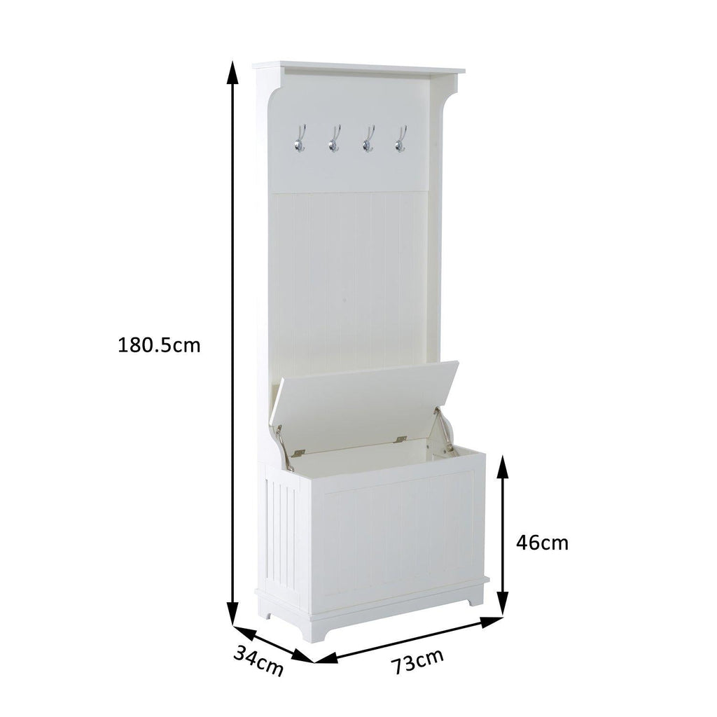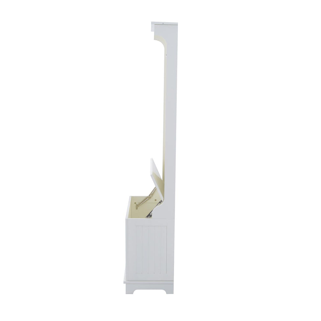 Mobile per Ingresso con Panca Contenitore e Appendiabiti in Legno Bianco