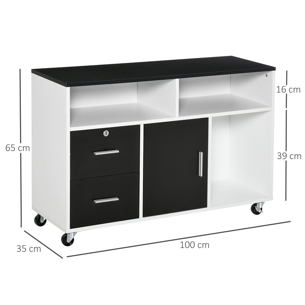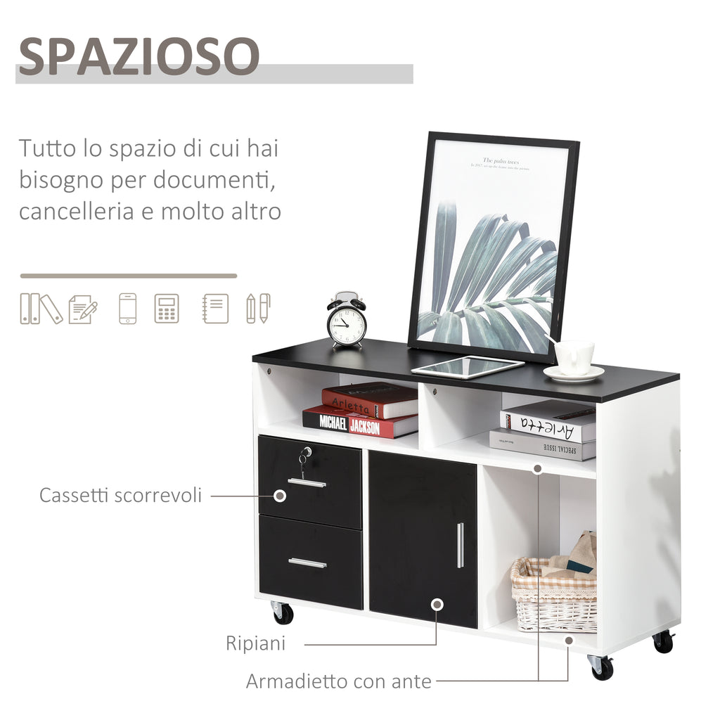 - AMPIA CAPACITÀ: Questo mobiletto basso con 3 mensole, 2 cassetti un armadietto è ideale per posizionare la stampante e tenere in ordine documenti, cancelleria, libri e tutto ciò che ti serve in ufficio. I cassetti sono dotati di chiave per tenere al sicuro i tuoi oggetti e i documenti.