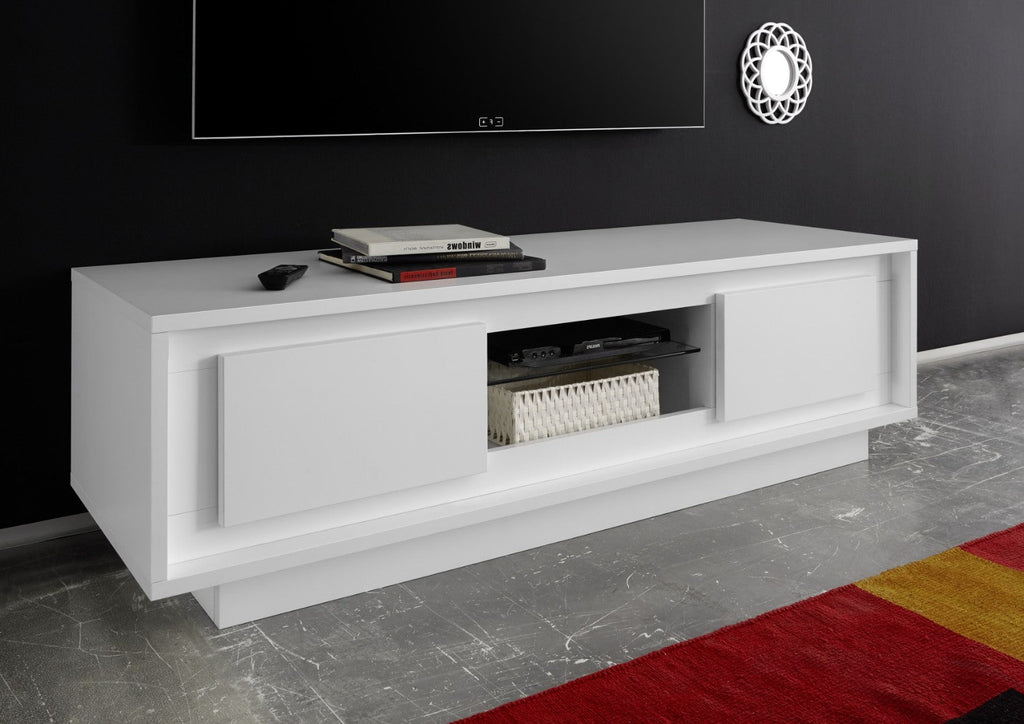 Mobile Porta TV 2 Ante 156x50x45 cm in Legno TFT Frame Bianco Opaco