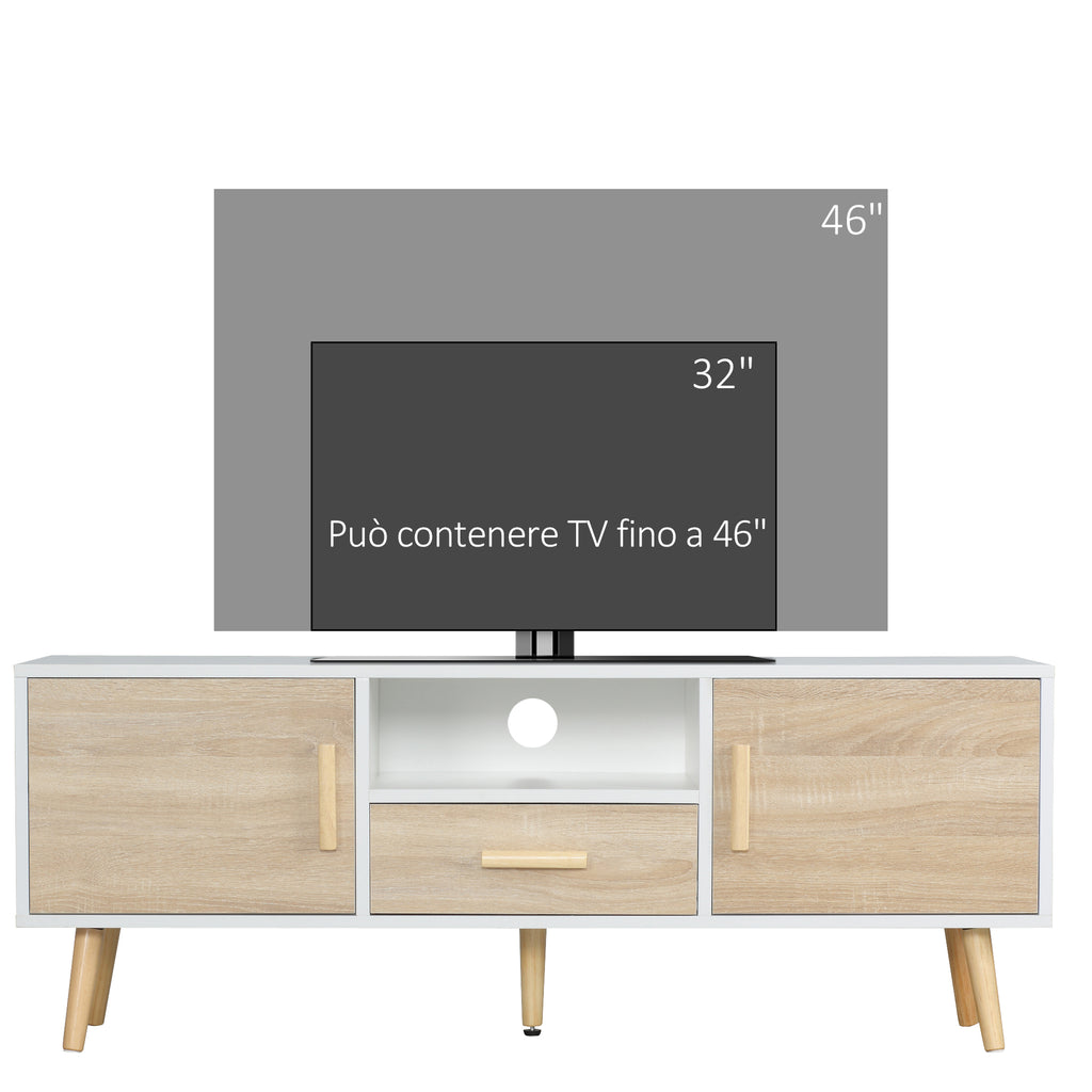 Mobile Porta TV Basso max 46" 140x40x55,3 cm con Ripiano Cassetto e 2 Armadietti in Truciolato e Pino