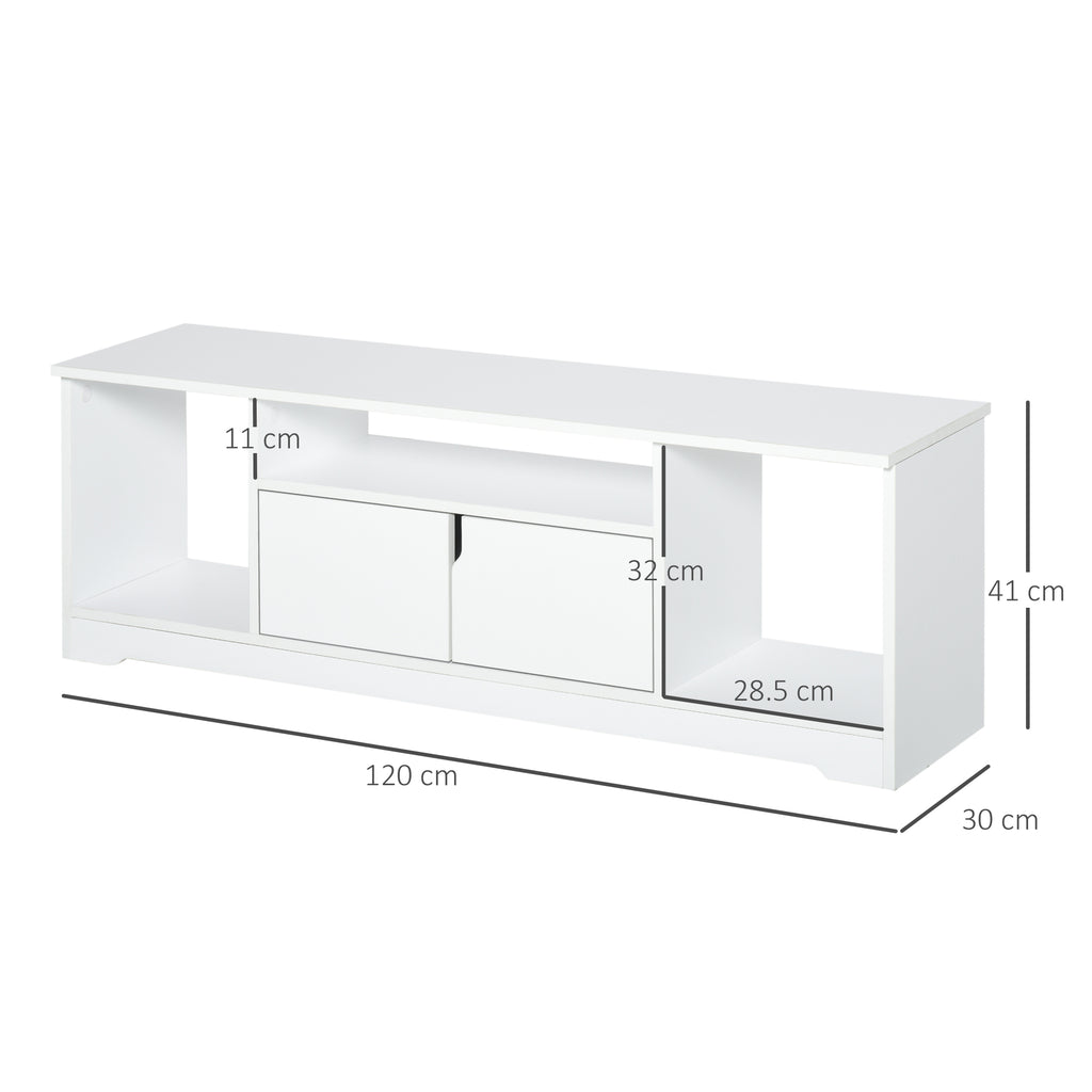 Mobile Porta TV fino a 42 120x30x41 cm con Armadietto e Ripiani in Legno Bianco