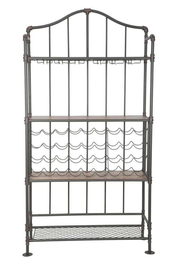 Mobile con portabottiglie e portabicchieri in metallo e mdf. Splendidi complementi industrial che si inseriscono facilmente nel proprio living o in un locale commerciale. Il legno ed il ferro si esprimono nella loro forma più moderna