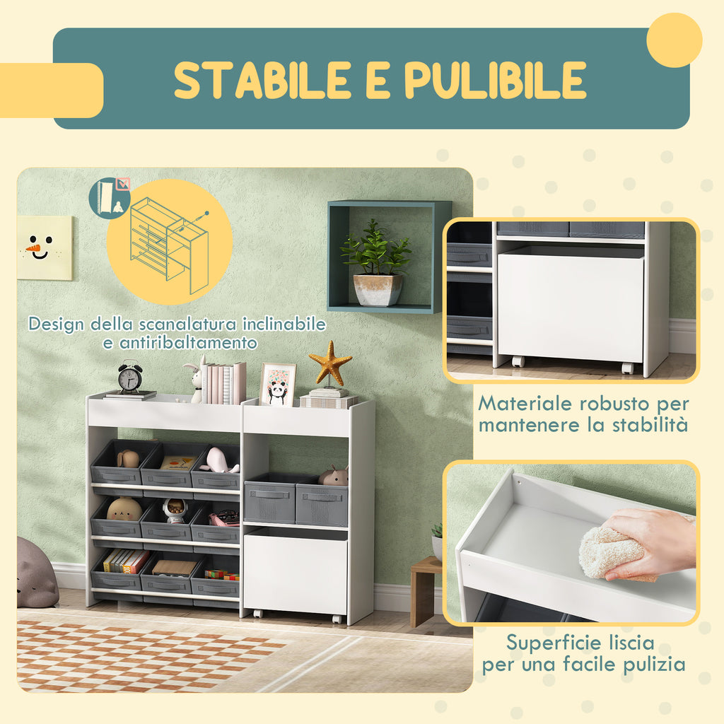 • DESIGN AMICO DEI BAMBINI: Con un'altezza ridotta a 80 cm, questo mobiletto portagiochi è facilmente accessibile a bimbi di età compresa tra 3 e 8 anni. Con un design inclinato e una scanalatura antiribaltamento per facilitare il prelievo degli oggetti e favorire l'autonomia nel riordino e organizzazione del proprio spazio
