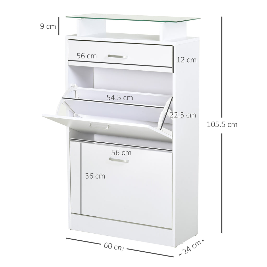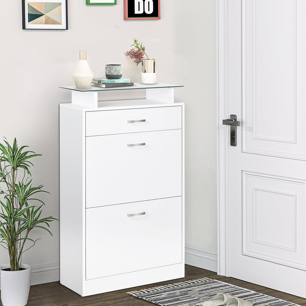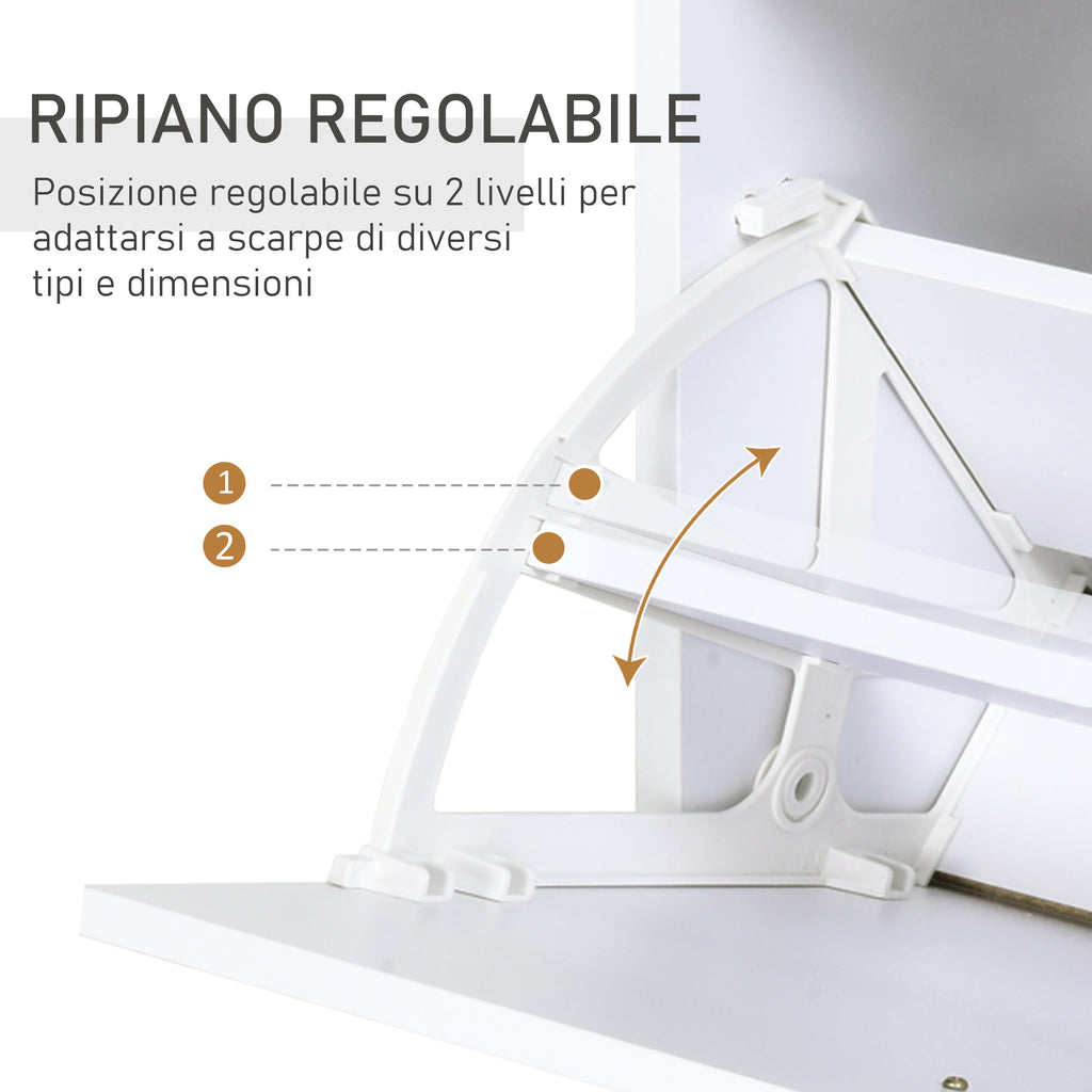 Mobile Scarpiera 2 Ante a Ribalta 1 Cassetto 1 Mensola in Vetro in Legno Bianco