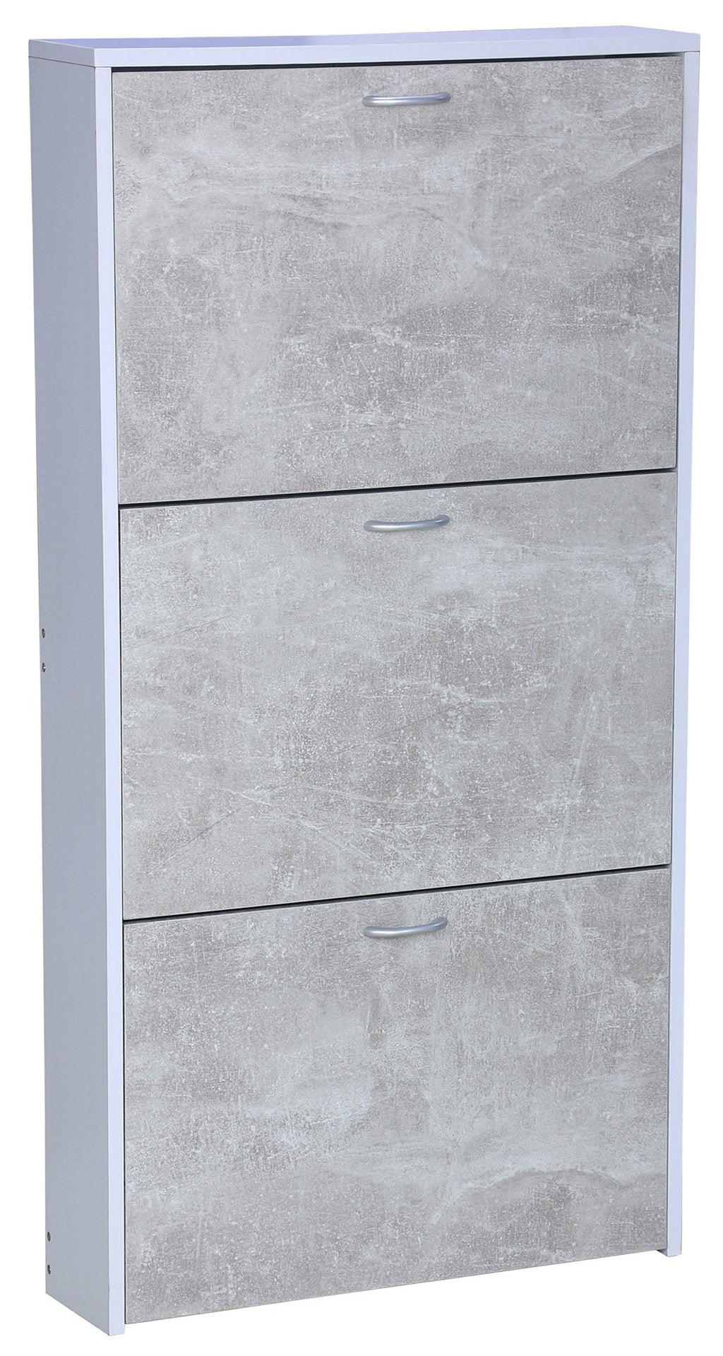 Mobile Scarpiera 3 Ante 60x14,5x116 cm in Legno Truciolare Bianco e Cemento