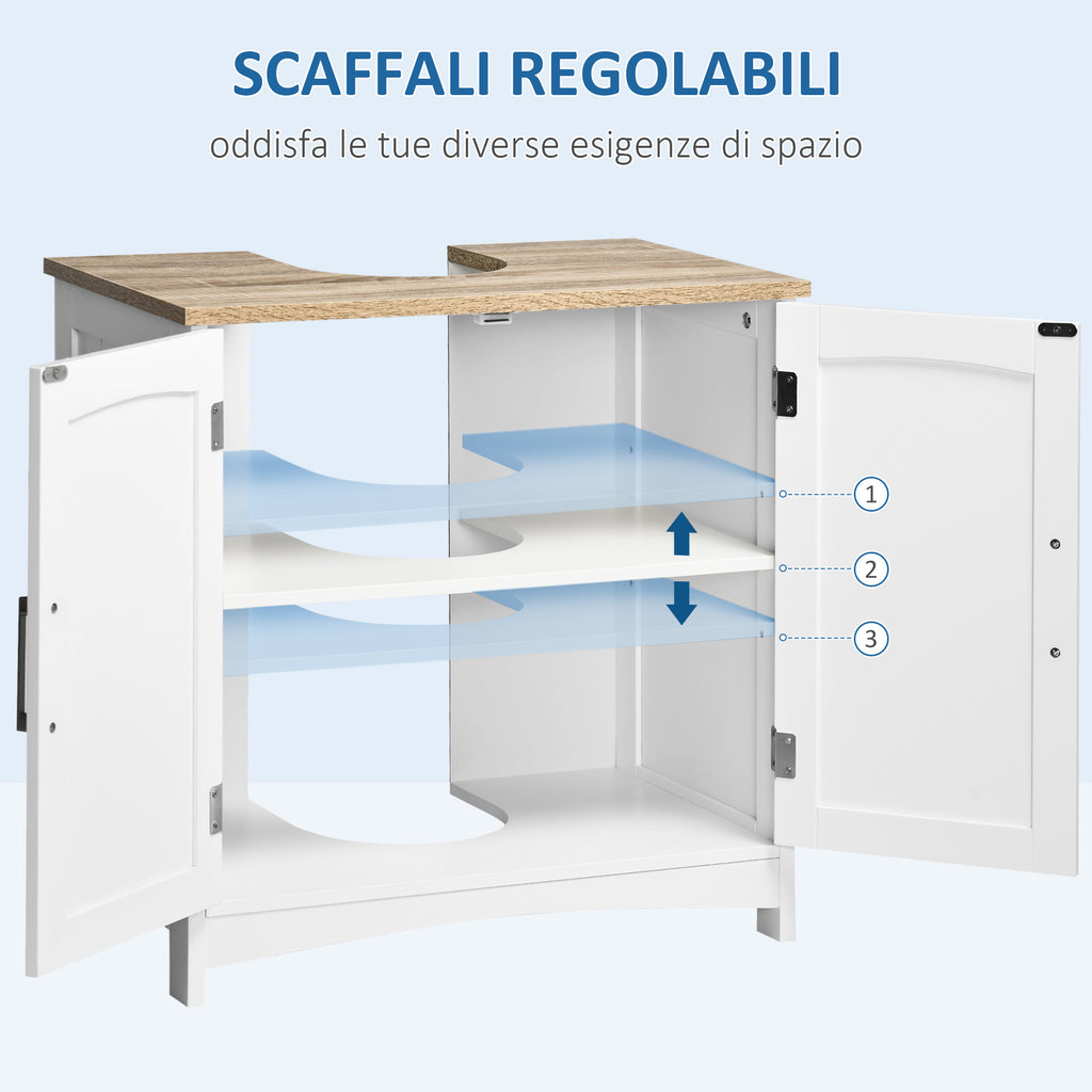 Mobile Sotto Lavabo Bagno 60x33x60 cm Base con Ante in MDF Bianco e Legno