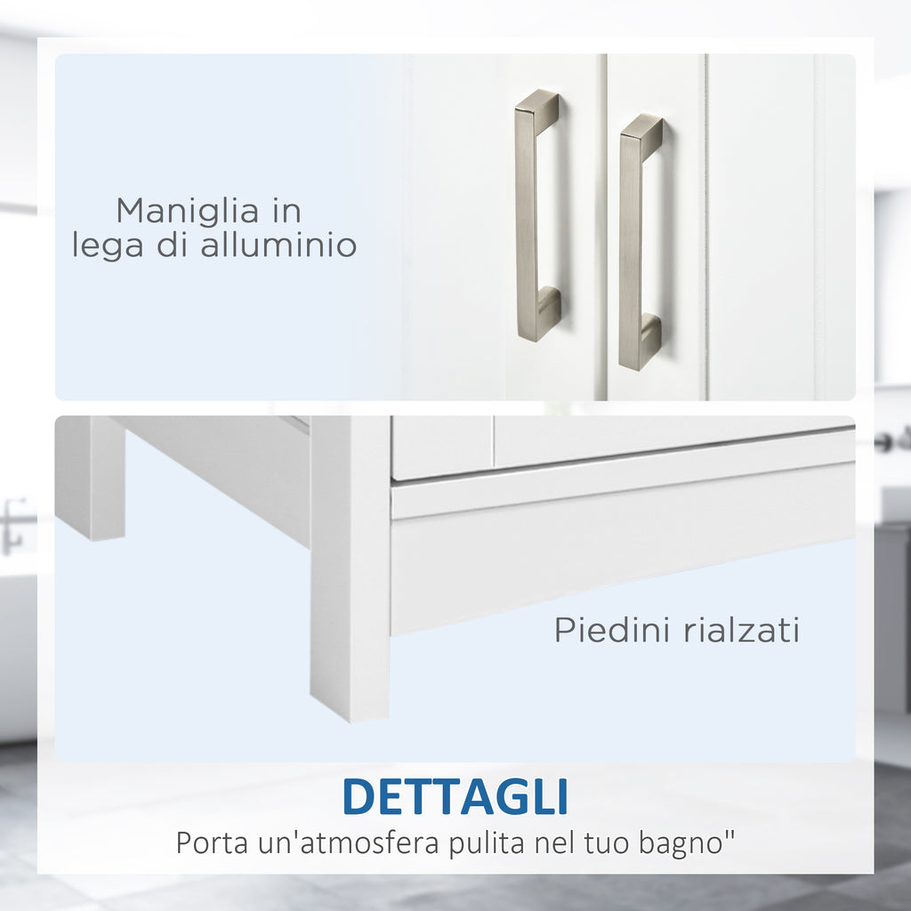 Questo mobiletto da bagno è un ottimo accessorio per il tuo lavabo. Il design semplice e pulito del mobile sotto lavabo si abbina ottimamente a qualsiasi stile di arredamento della tua casa. La struttura in MDF di qualità è robusta e la superficie resistente all'acqua si rivela facile da pulire. Goditi uno spazio più organizzato con questo armadietto bagno.