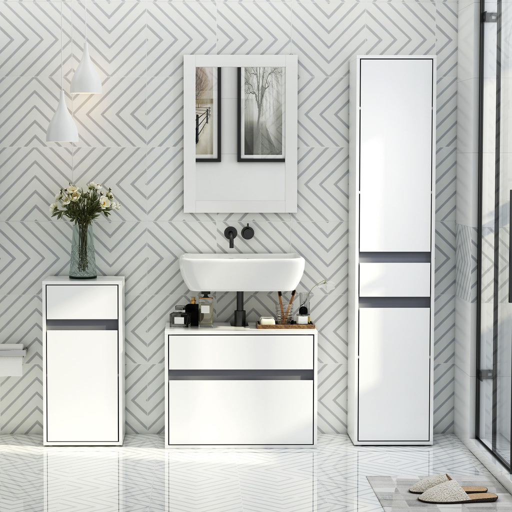 Con Armadietto sottolavabo , rende il tuo bagno ben pulito e ordinato. Lo stile elegante e Colore bianco si integra facilmente nell'ambiente. Realizzato in MDF e pannello truciolare per una resistenza, con il taglio a 'ù che gli permette di incastrarsi comodamente intorno al lavandino e ai tubi. Cassetti di diverse dimensioni possono soddisfare le vostre varie esigenze di ordinare.