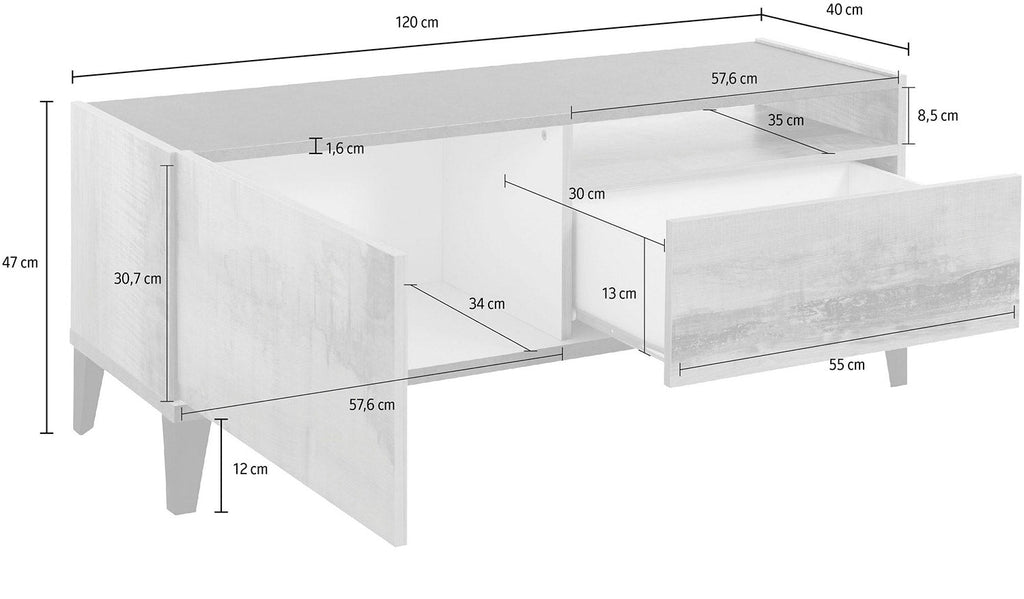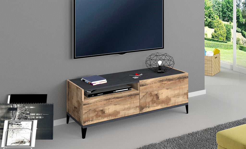 Mobile TV 1 Anta 1 Cassetto 120x40x47 cm Sunrise Acero Pereira e Ardesia