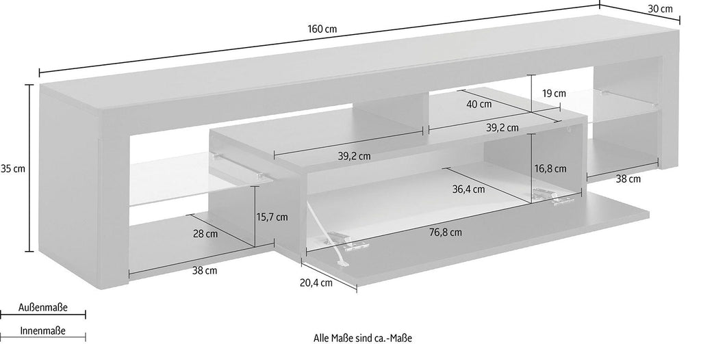 - Dimensioni mobile tv: 160x40x35 cm (LxPxA)