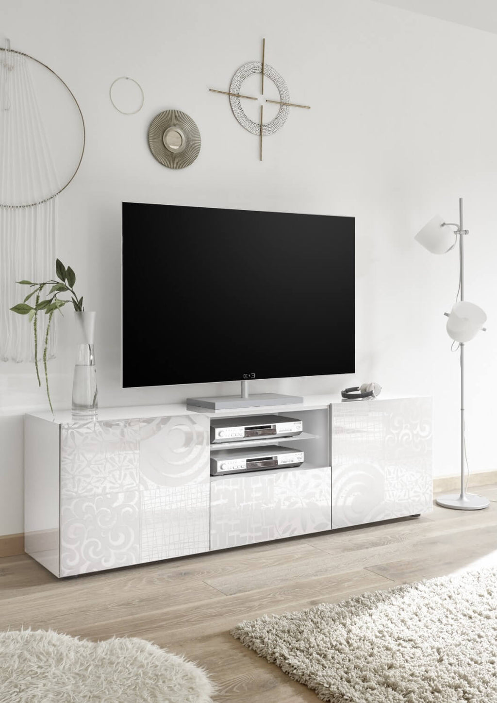 Mobile TV 1 Cassetto 2 Ante 5 Ripiani in Melaminico 180x42x57cm TFT Blossom Bianco