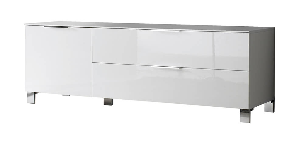 Mobile TV Con 1 Porta e 2 Cassetti 53x158x45cm TFT Sola Bianco Lucido