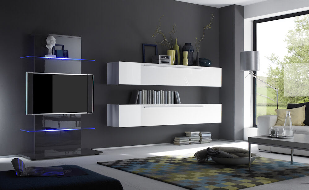 Mobile TV 1 Porta Flip 210x36x33,5cm TFT Primo Bianco Lucido