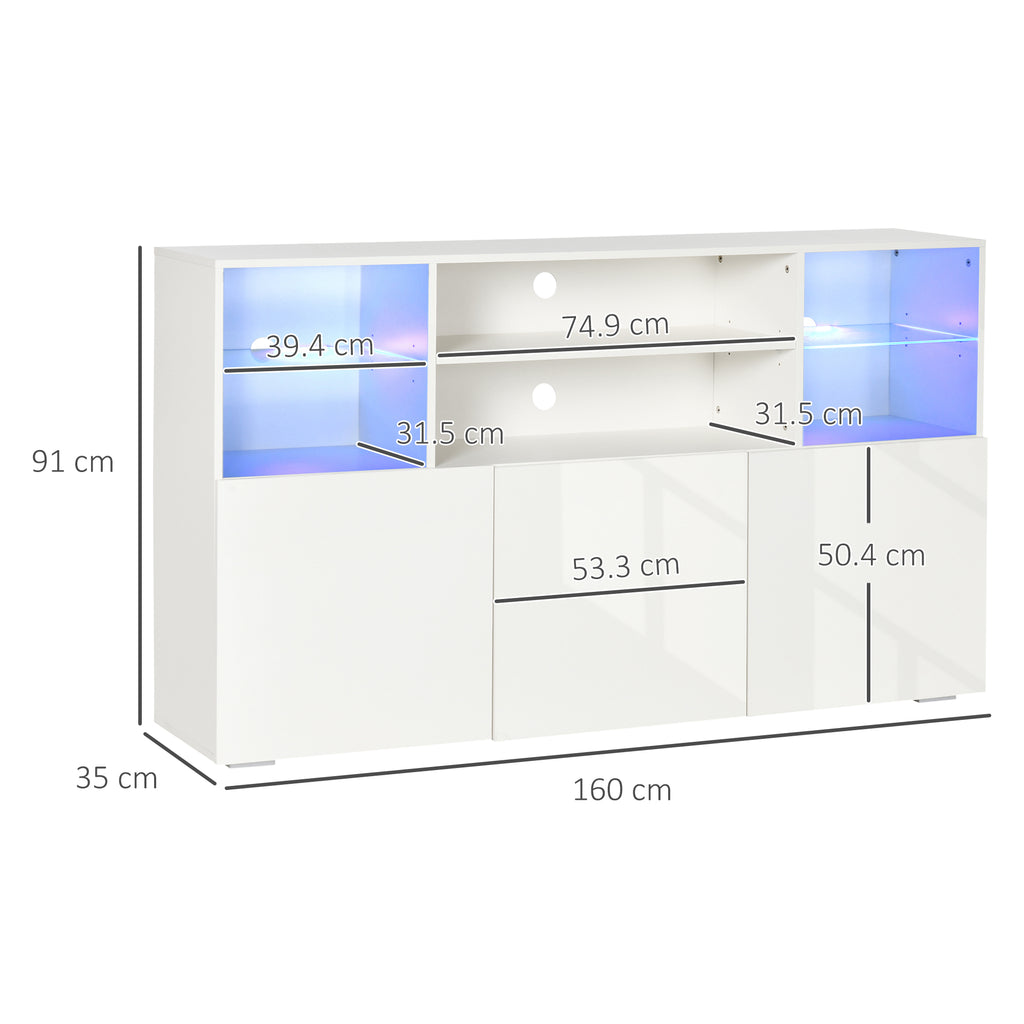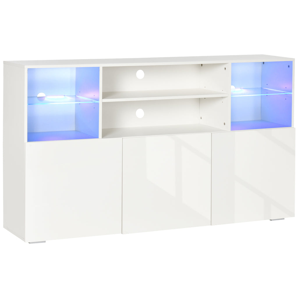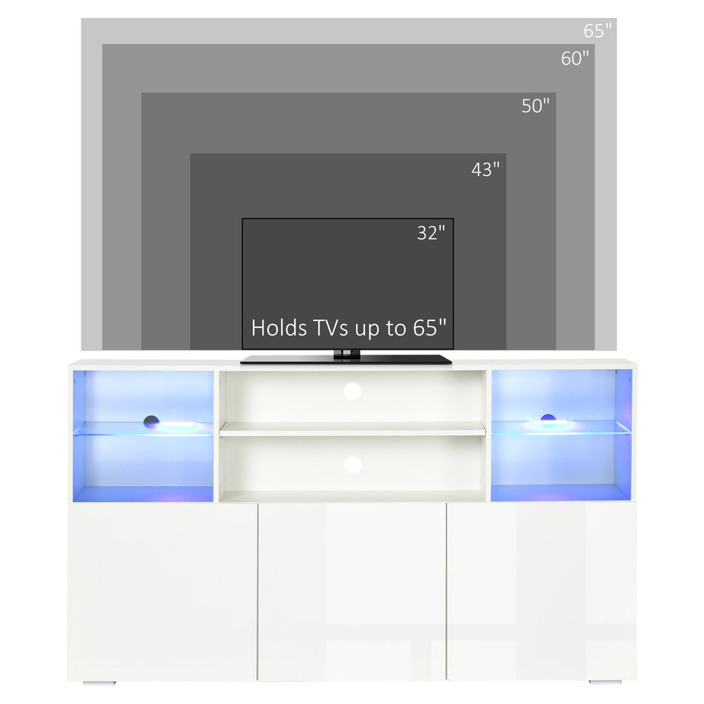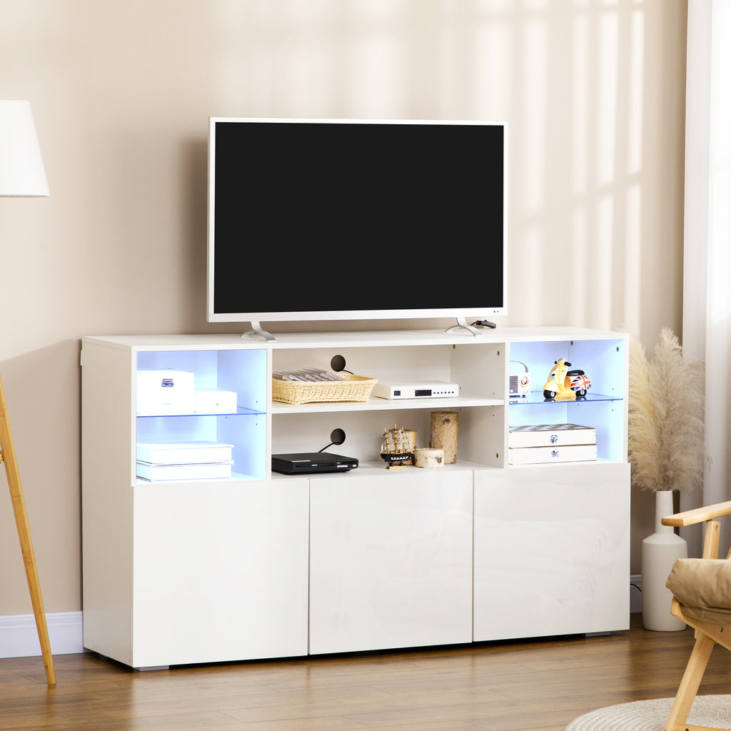 Aggiorna lo stile del tuo salotto con questo mobile TV . Il design moderno con finitura lucida, luci LED e ante con apertura a pressione lo rendono perfetto da abbinare a diversi stili di arredo. L'ampio piano superiore permette di posizionare TV fino a 65", mentre i tre vani e i tre armadietti offrono tanto spazio per tenere in ordine. Il complemento di arredo perfetto per rinnovare i tuoi spazi di casa.